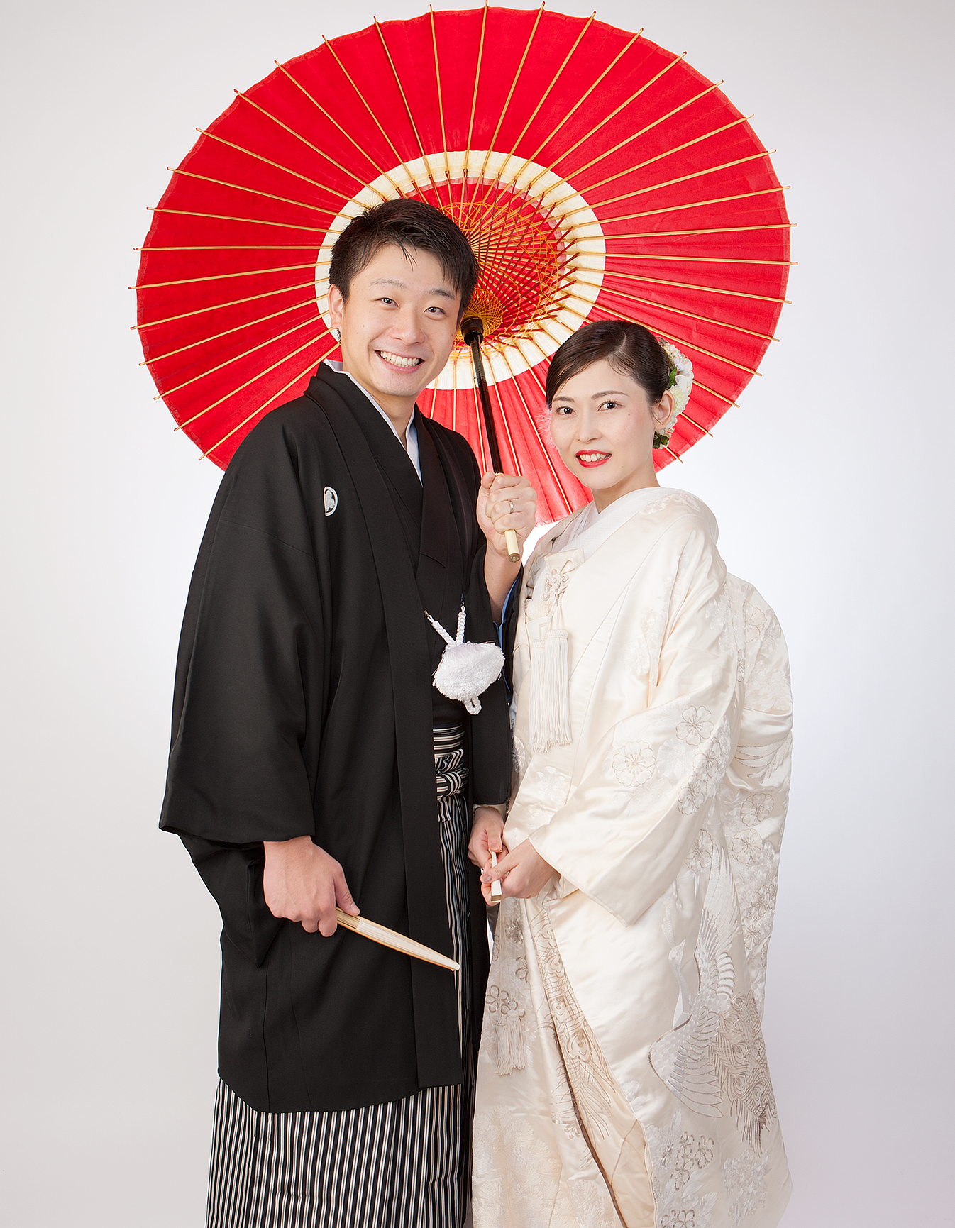写真2カット/2面アルバム1冊(・花嫁 色打掛衣裳・花嫁 白無垢衣裳・着付・ヘアメイク ・新郎 紋付袴衣裳・着付)¥126.500(税込)